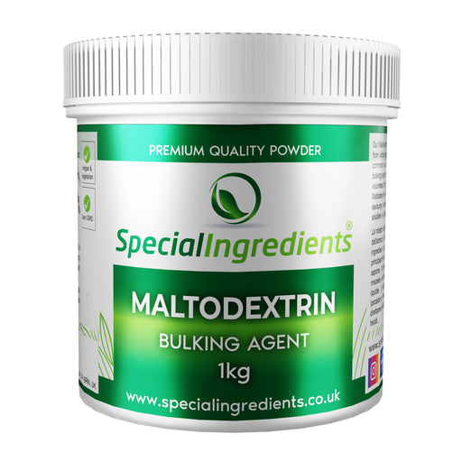 Our maltodextrin is a high quality product. A fine, dry powder produced from wheat starch. Easily soluble in both hot and cold liquids. It is one of the most commonly used ingredients in the food industry, where it is primarily used as a low-calorie bulking agent or flavor carrier. It can be used to thicken liquid solutions and to bulk dry doughs. Use to disperse ingredients or flavorings in dry or liquid solutions. Maltodextrin is not sweet so it can also be used as a low-calorie sugar substitute in savoury ice cream or sorbet. Suitable for vegans and vegetarians, non-GMO, non-irradiated, kosher friendly, halal friendly.